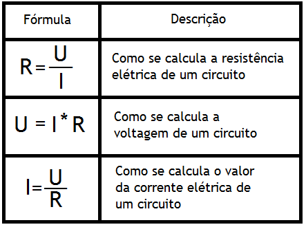 Graças a estas analogias, Ohm supôs que a intensidade da corrente elétrica é dada pelo quociente entre a grandeza diferença de potencial e a resistência elétrica do condutor: